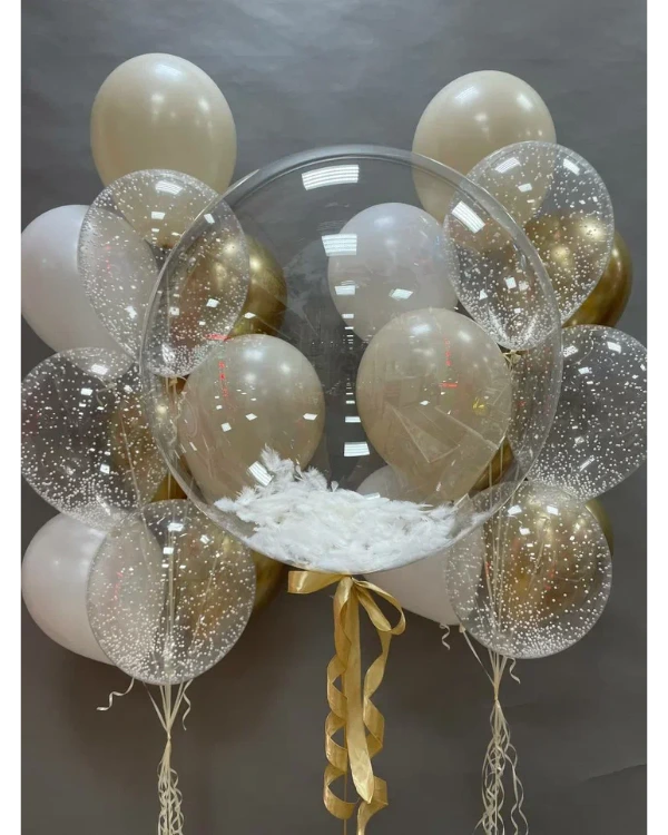 Воздушные шары, наполненные перьями, могут символизировать эмоциональные полеты фантазии. Цвета красного, золотого и серебряного выражают всю сложность этих сильных чувств, которые невозможно выразить словами. С воздушным шаром, полным перьев, вы сможете позволить своим истинным эмоциям улететь и распространить вокруг себя счастье и любовь!